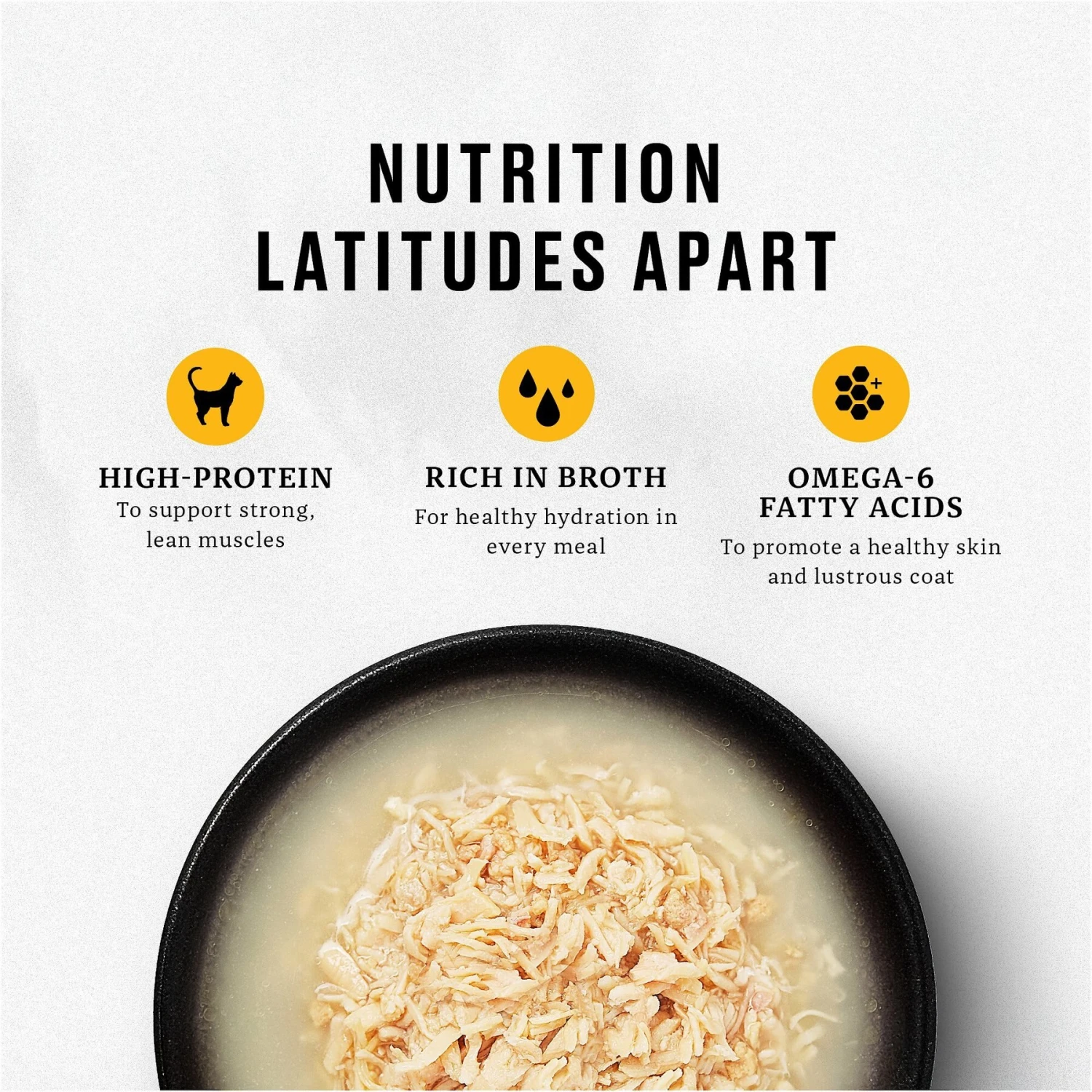 - Based on a prey-based, feline-appropriate diet with real, shredded chicken in a savory broth.