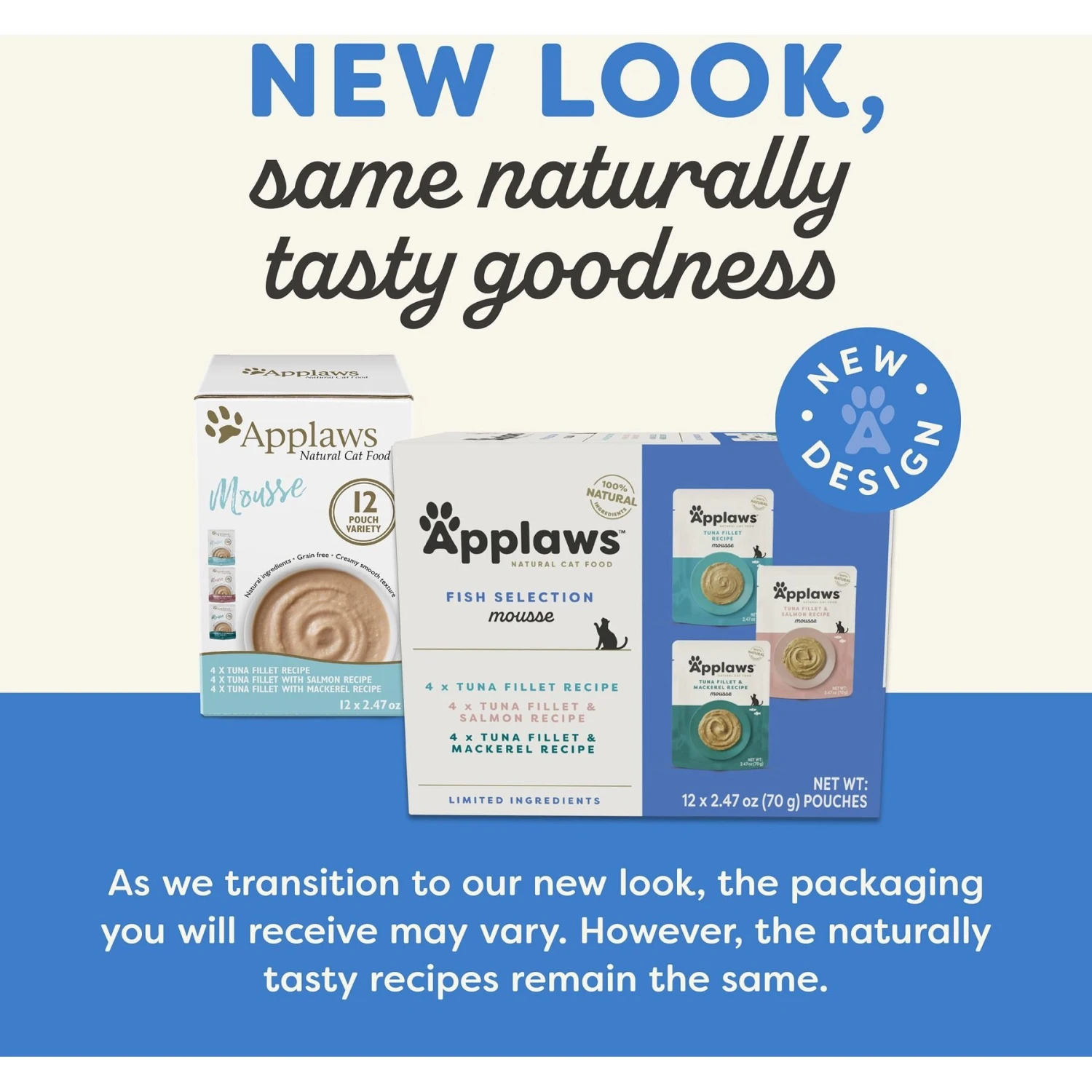Applaws Variety Of Flavors In Mousse Limited Ingredient Wet Cat Food, 2.47-oz Pouch, Case Of 12
