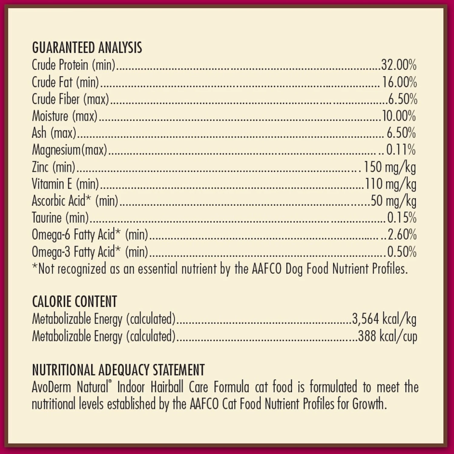 AvoDerm Natural Indoor Hairball Care Formula Adult Dry Cat Food