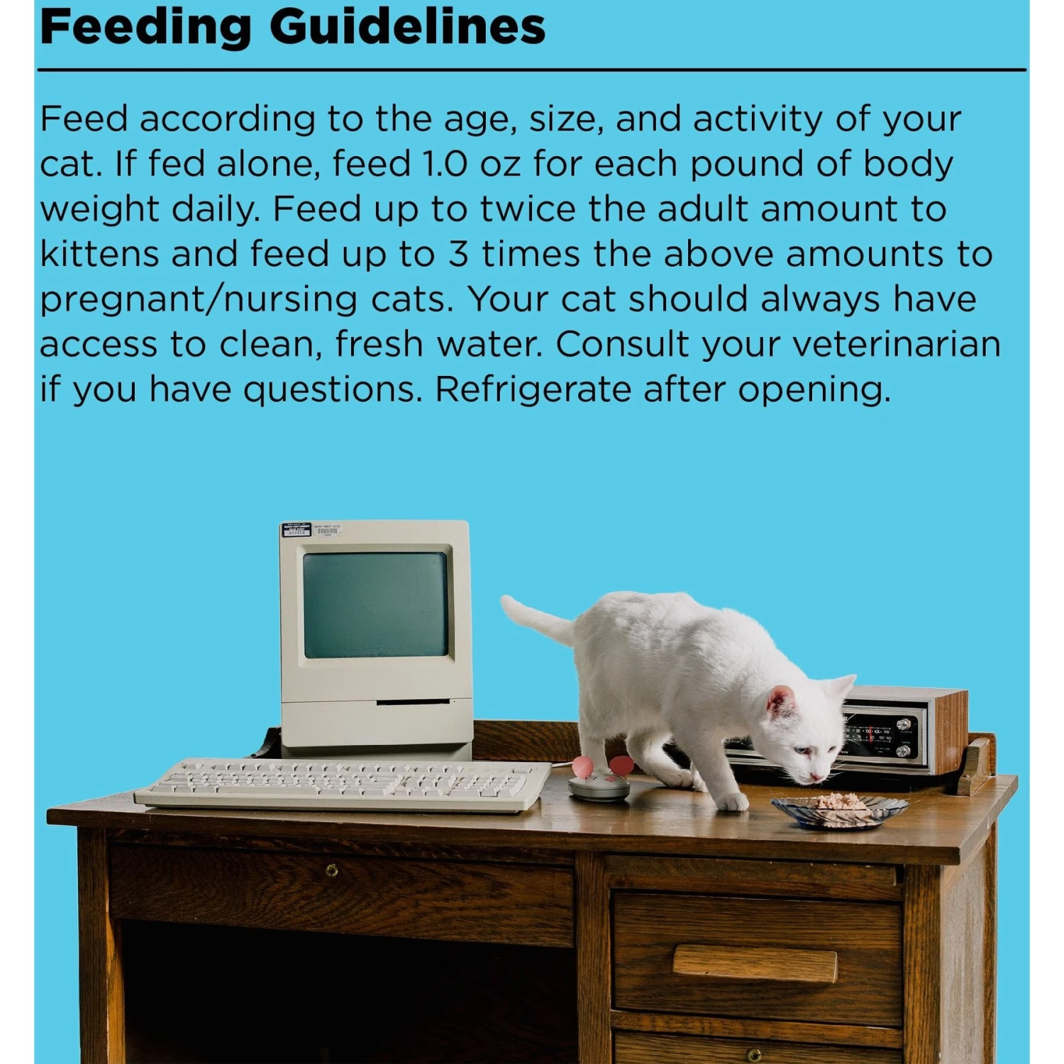 - Made with sustainably sourced cage-free chicken and wild-caught tuna.