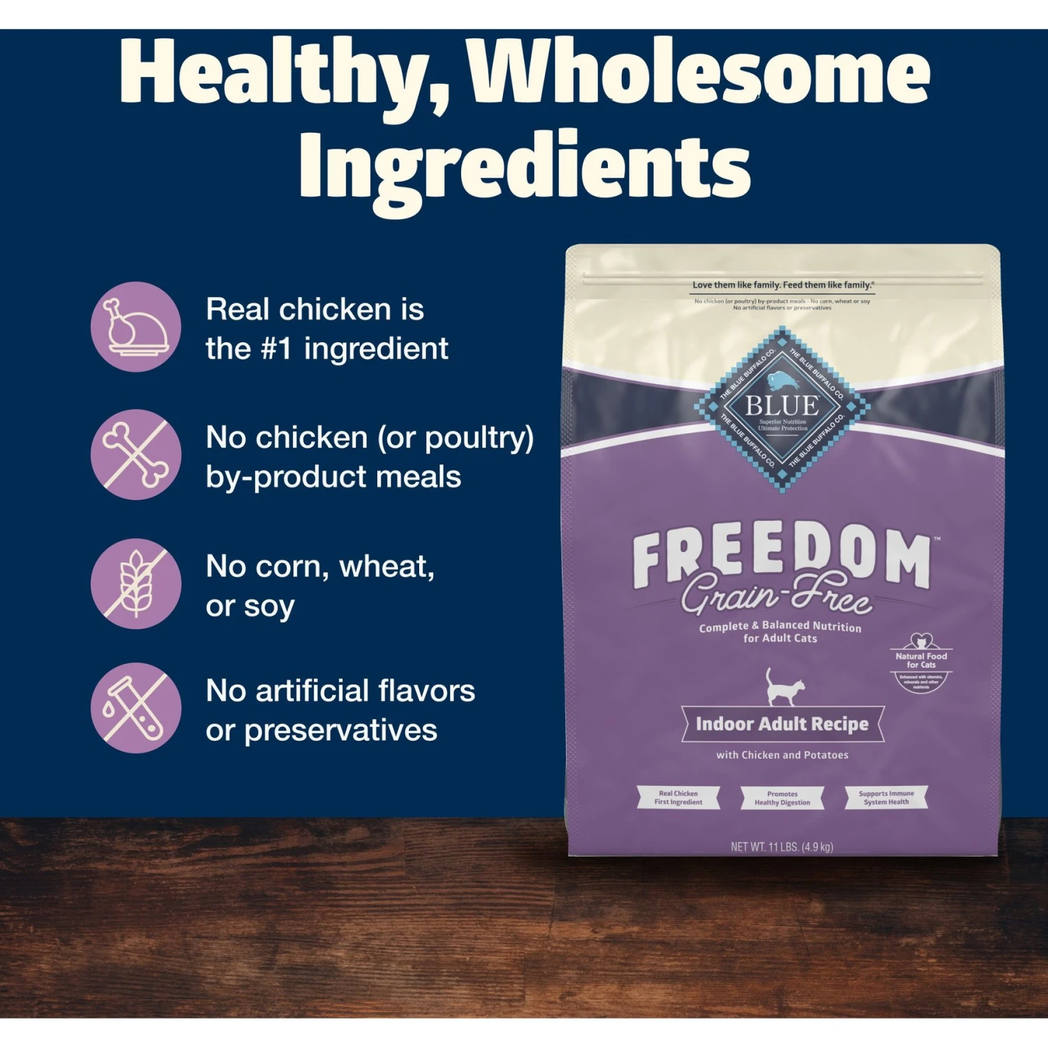 - Grain-free and gluten-free natural cat kibble made without poultry by-product meals, corn, wheat, soy, artificial flavors or preservatives.