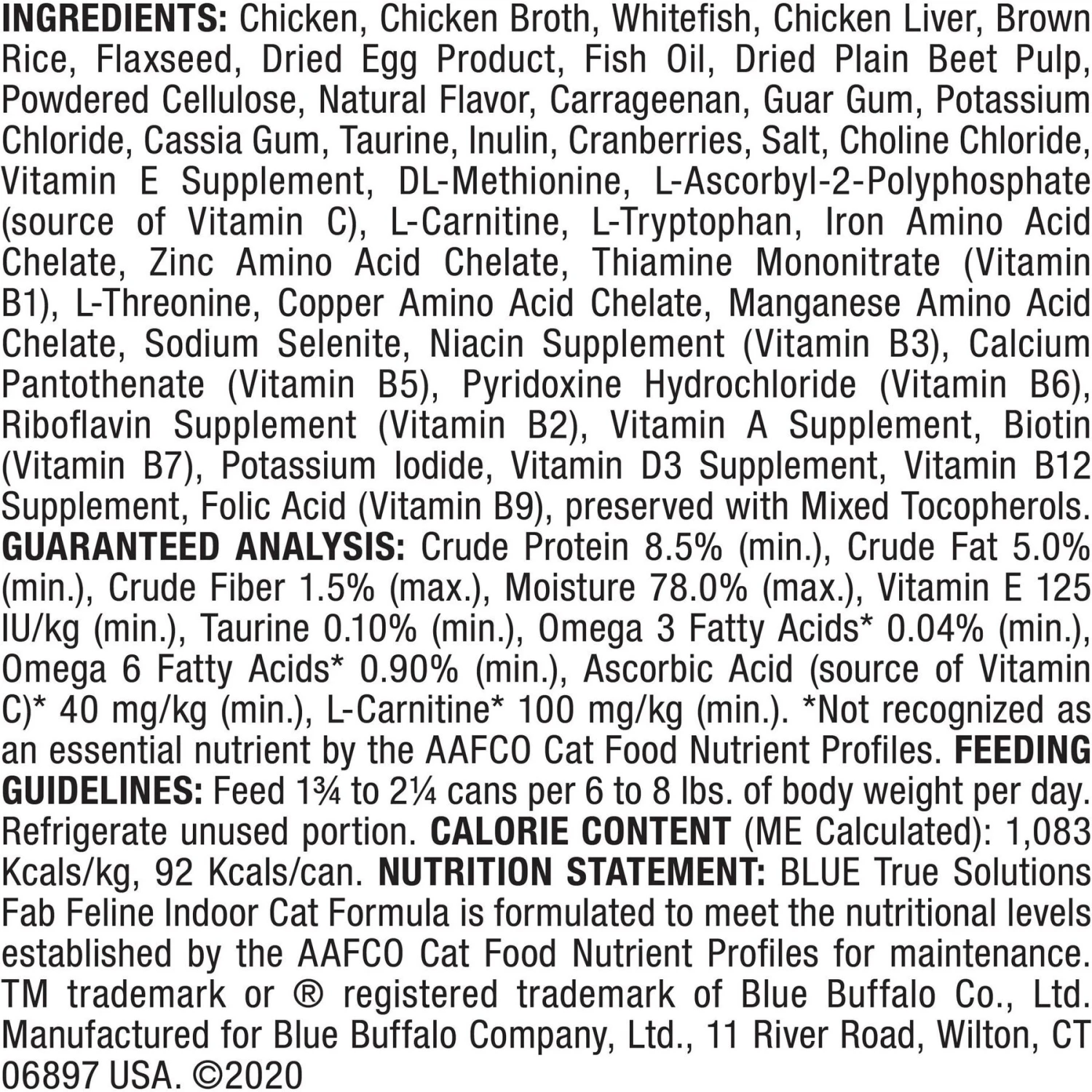 Blue Buffalo True Solutions Fab Feline Natural Indoor Adult Chicken Entree Wet Cat Food, 3-oz Can, Case Of 12