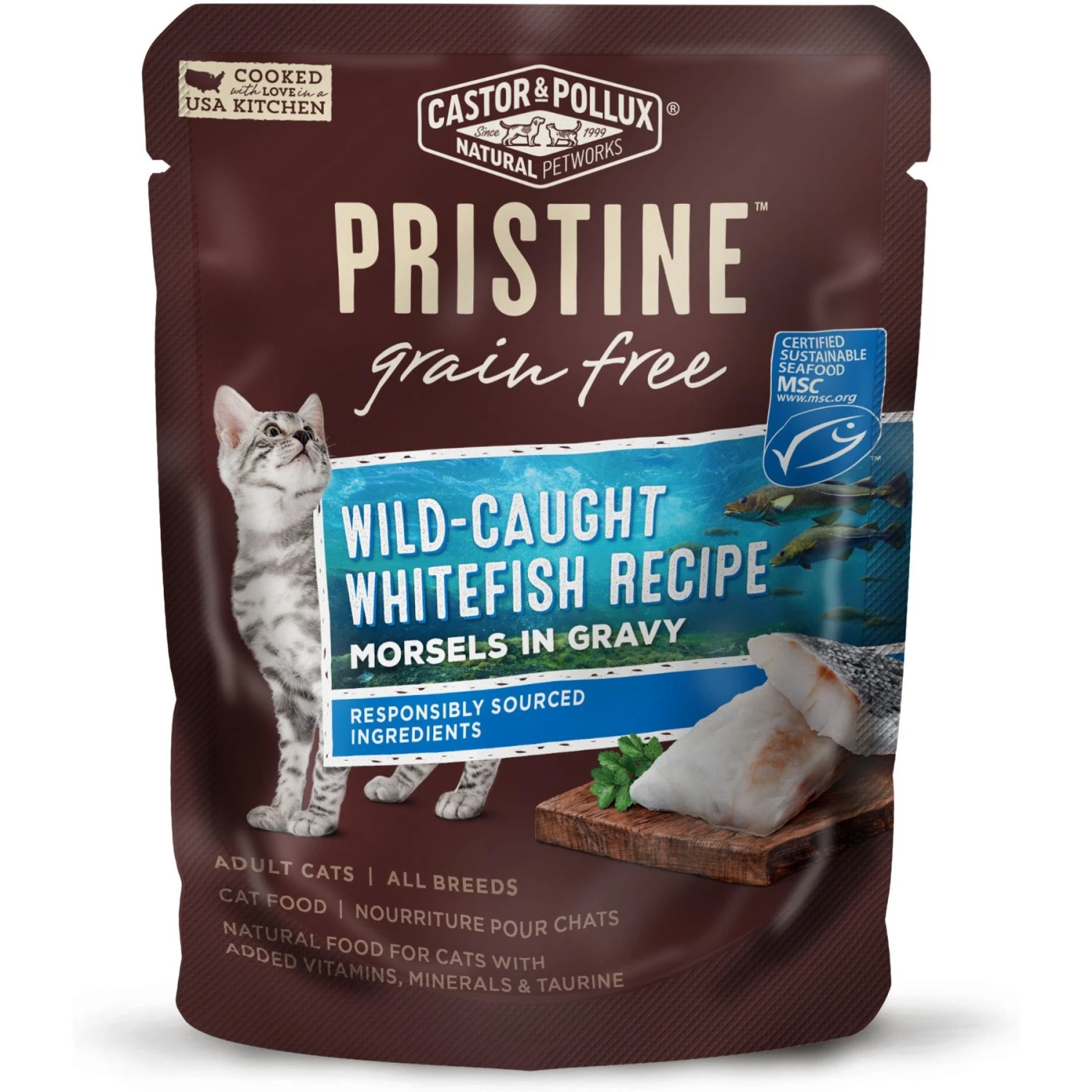 Castor & Pollux PRISTINE Grain-Free Wild-Caught Whitefish Recipe Morsels In Gravy Cat Food Pouches