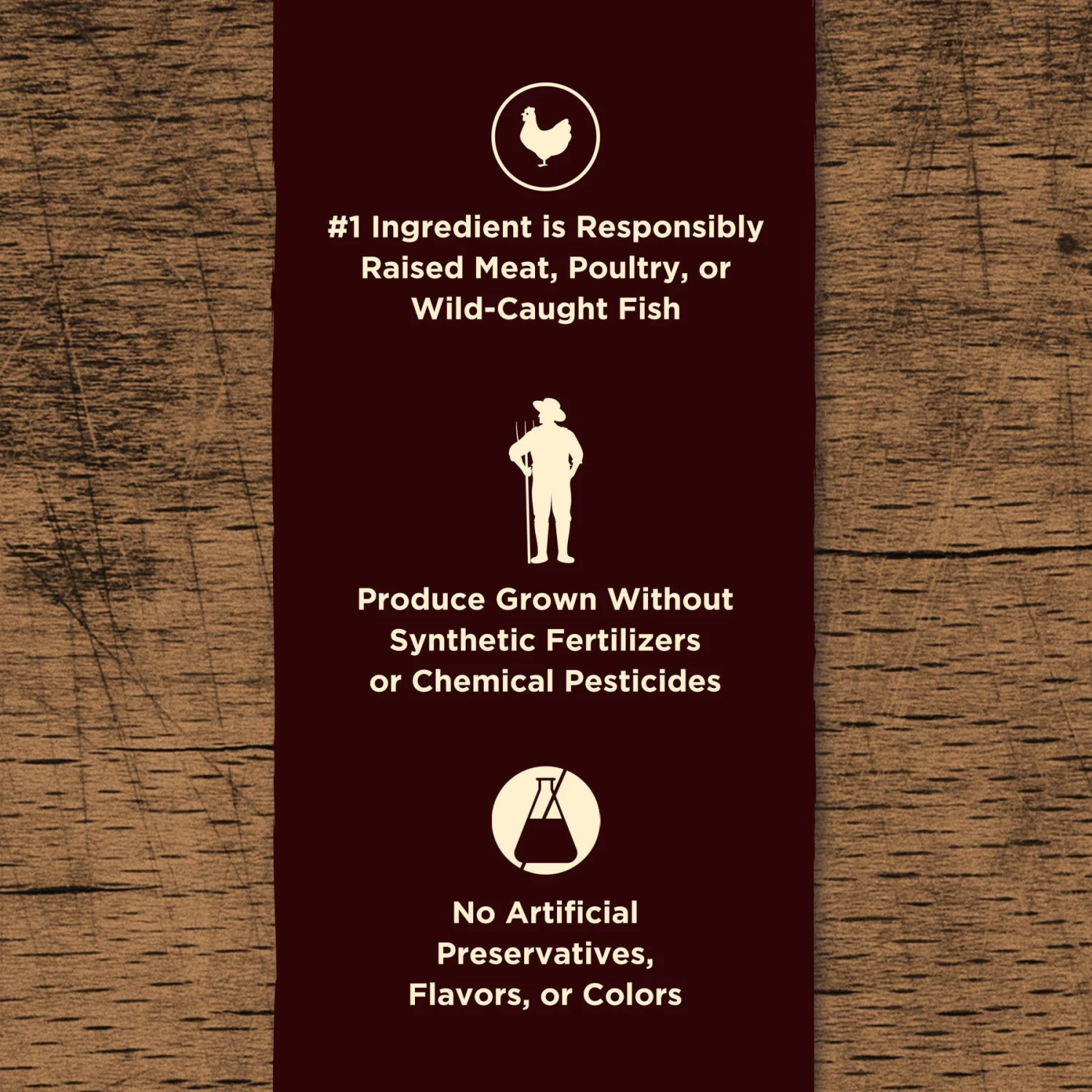 - Real organic peas, carrots, cranberries and apples are sustainably grown without synthetic fertilizers or chemical pesticides.