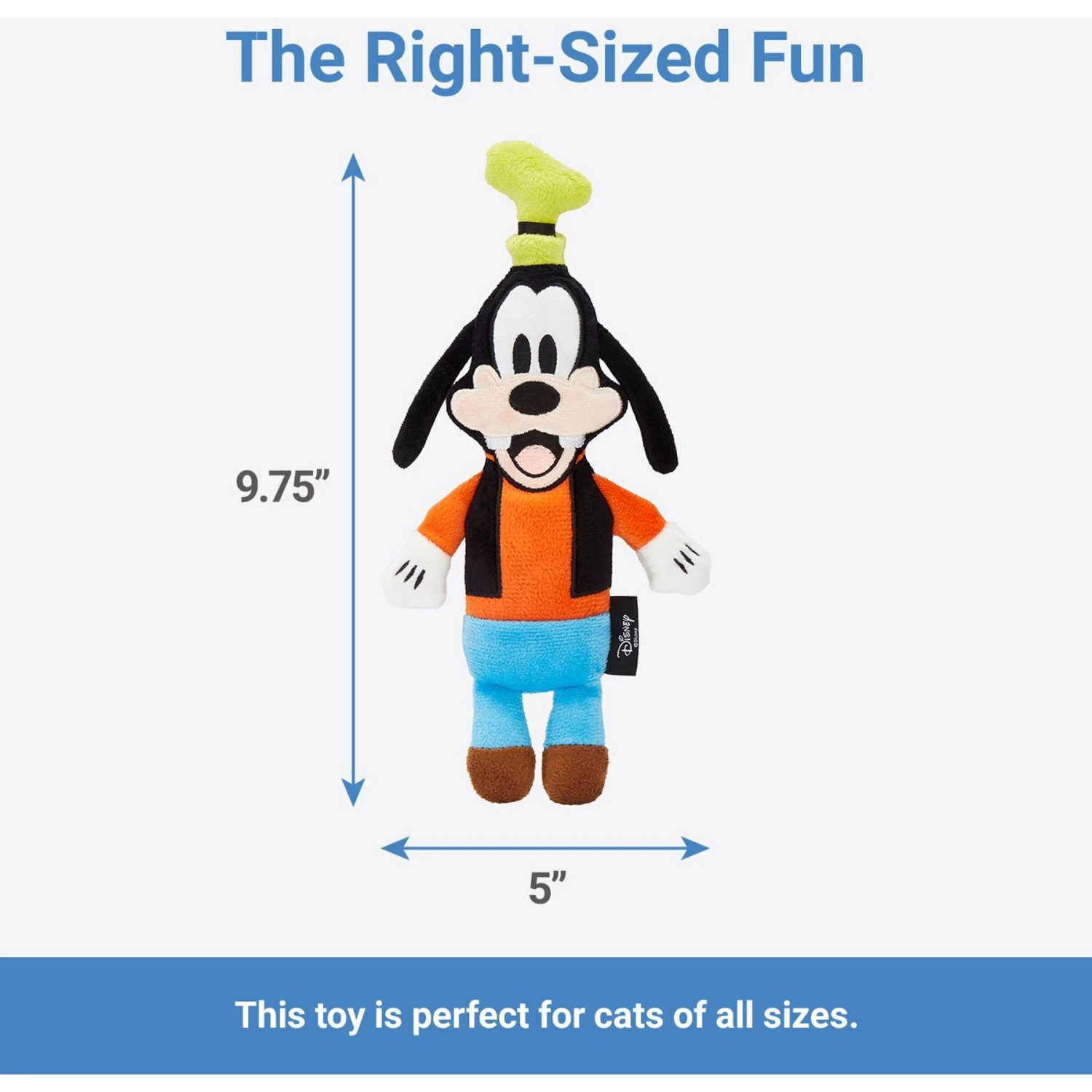 Disney Goofy Plush Kicker Cat Toy with Catnip—Bring your feline friend’s favorite Disney dog home with this Goofy plush kicker, available only at Chewy! This kicker toy is a furry fan favorite your cat will adore, for sure. It features a fabric cover they’ll love to claw, crinkle paper inside for an exciting sound and enticing catnip stuffing that they’ll go crazy for every single time. Bring the fun of their favorite classic Disney character, Goofy, to your kitty’s toy collection and watch them go wild with whimsy every time they play!