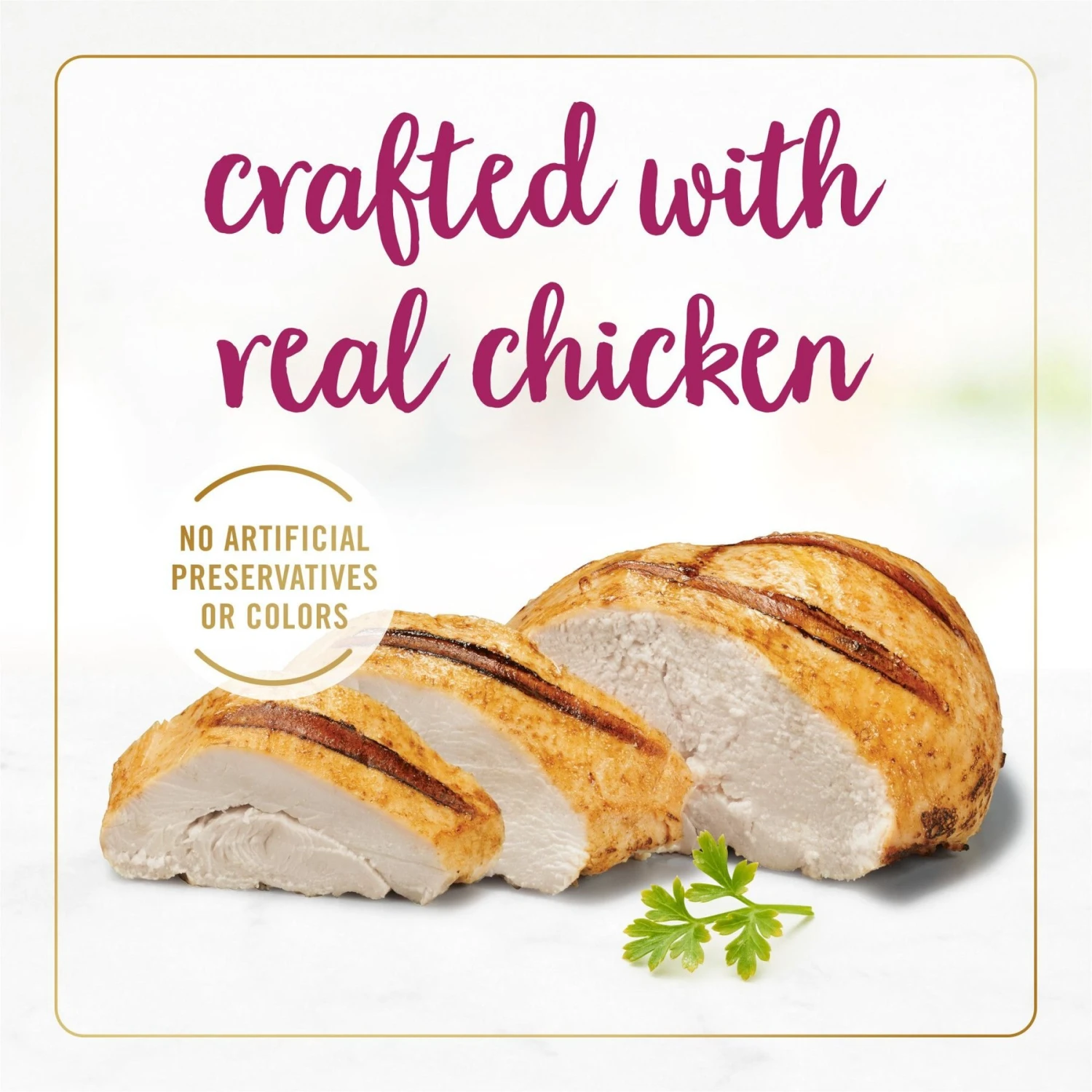 - Bistro-inspired wet food recipe with real chicken and cheese in gravy for high-protein nutrition.