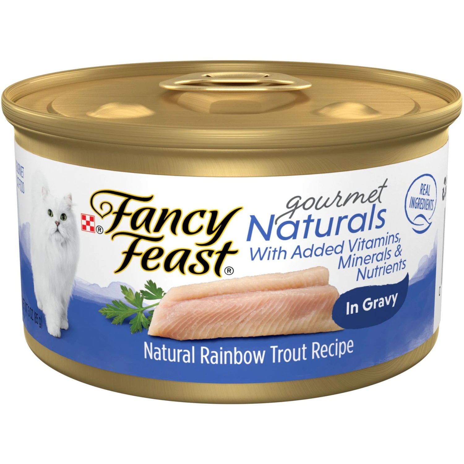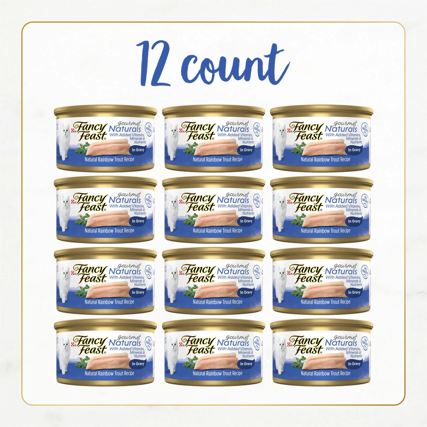 Fancy Feast Gourmet Naturals Natural Rainbow Trout Recipe In Gravy Canned Cat Food, 3-oz Can, Case Of 12