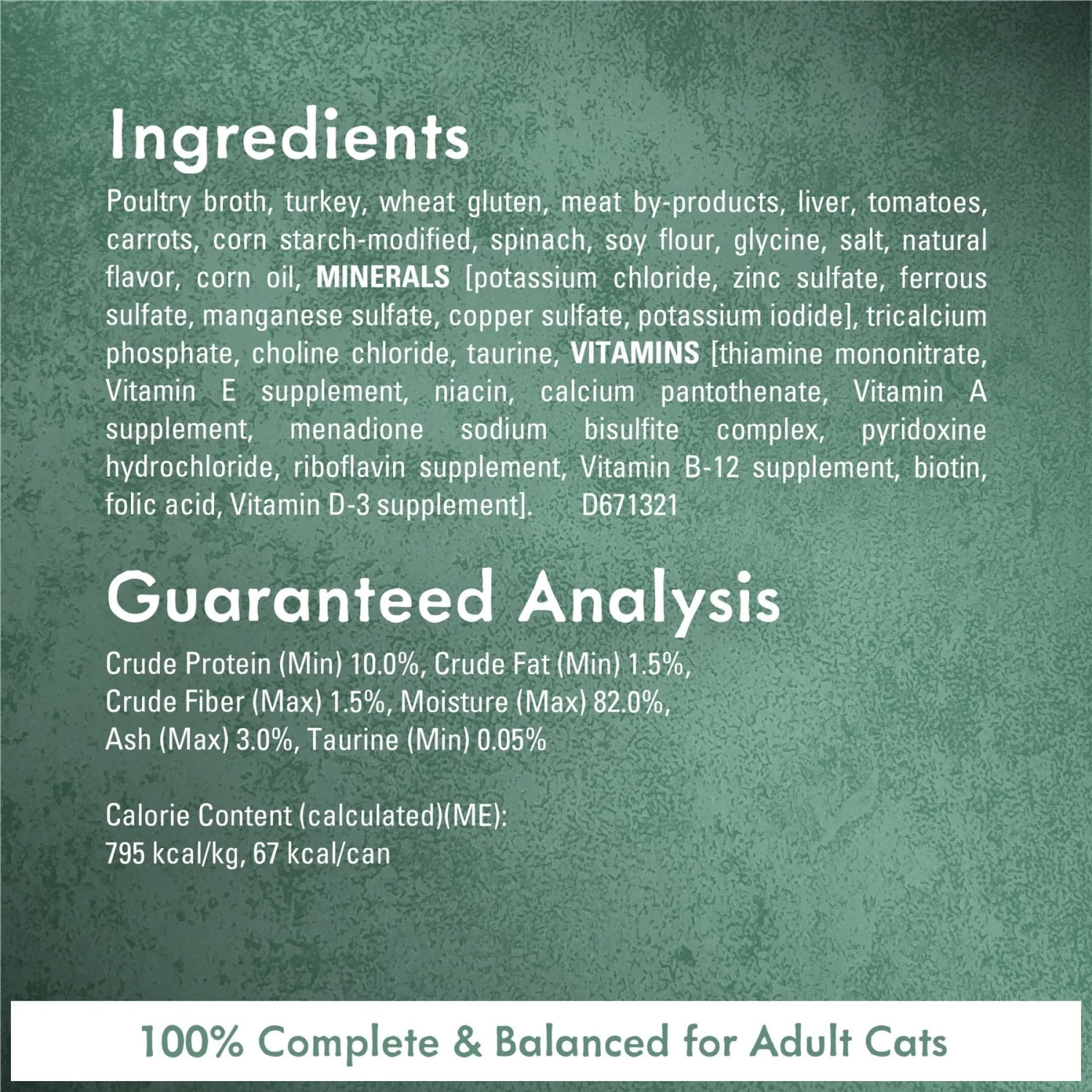- Crafted in partnership with our expert chefs and nutritionists with real, high-quality. ingredients, including real turkey, tomatoes, carrots and spinach in a savory broth for cats.