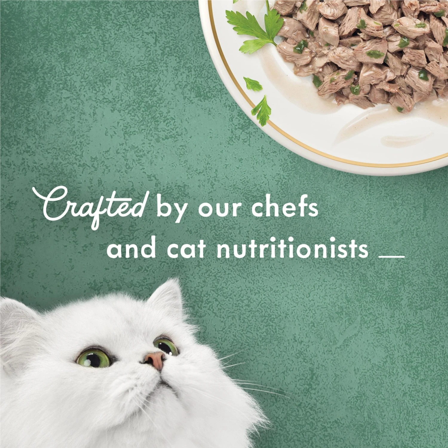 - Bistro-inspired wet cat food features real tuna and veggies in a delicate sauce and comes in an easy-to-serve can.