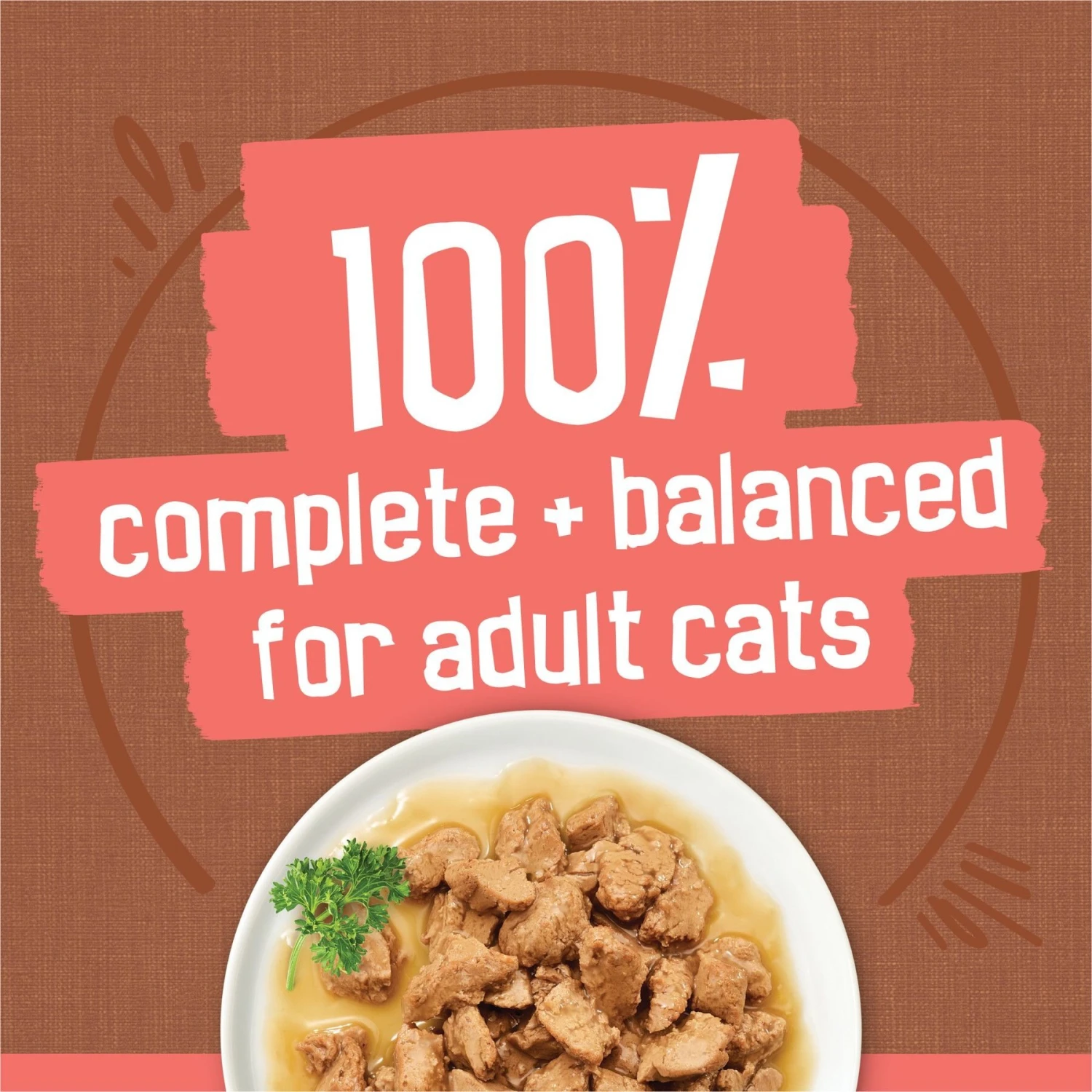 - Provides a 100% complete and balanced meal for cats, on its own or as a delicious kibble topper.
