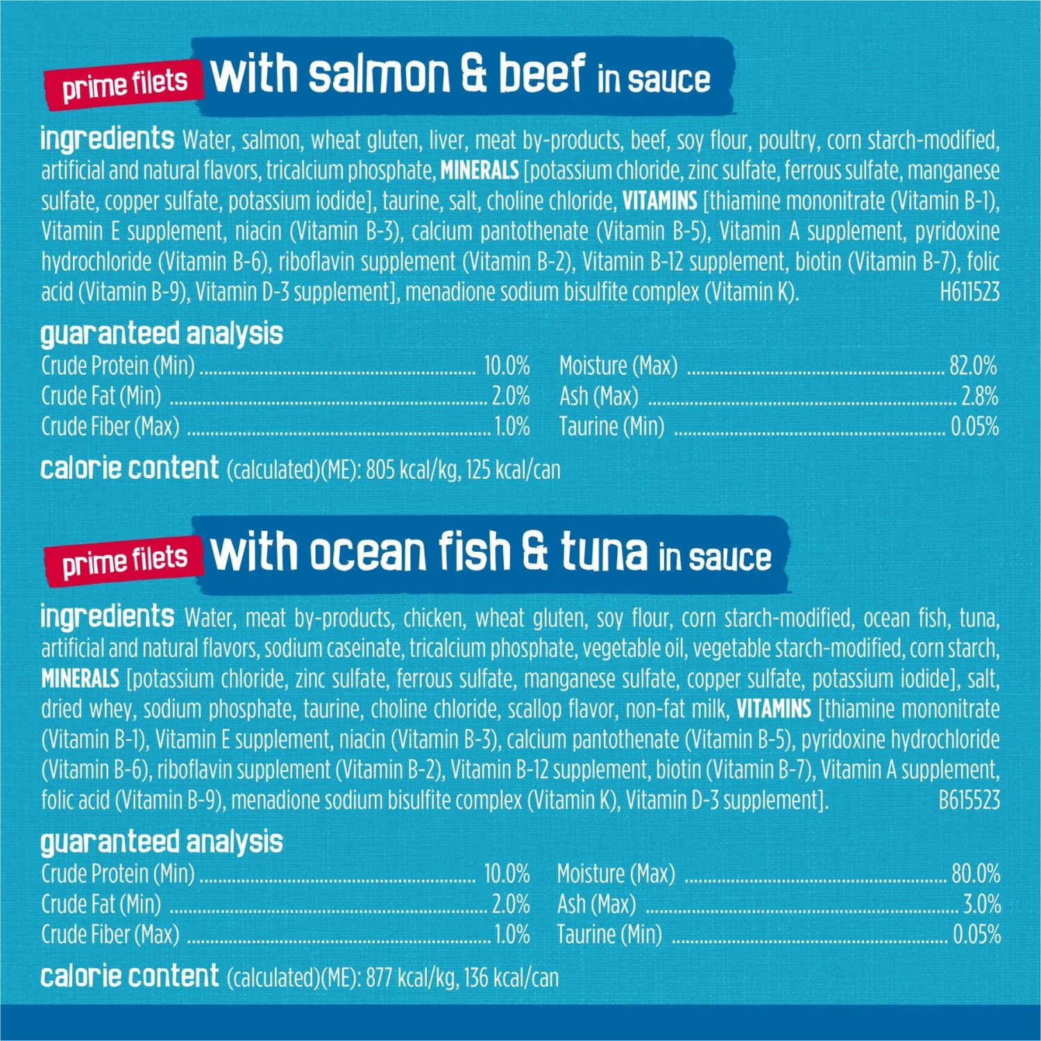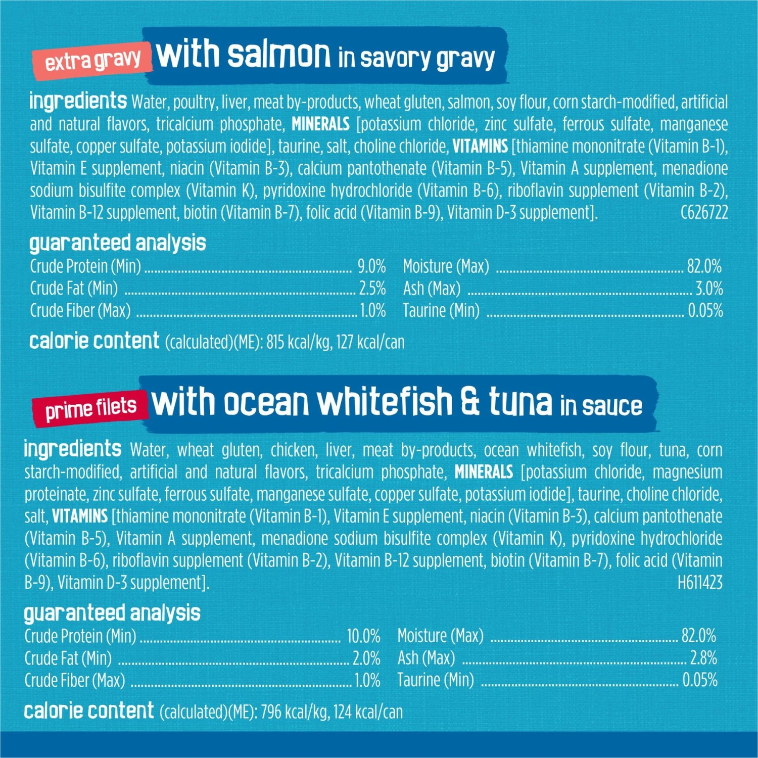 | Flavor | Chicken & Salmon, Variety Pack: Beef, Poultry, Fish, Whitefish & Sardines, Salmon, Variety Pack: Beef & Poultry, Ocean Whitefish & Tuna, Beef, Turkey & Cheese, Chicken, Variety Pack: Chicken Lovers, Variety Pack: Fish-a-Licious, Turkey & Giblets |