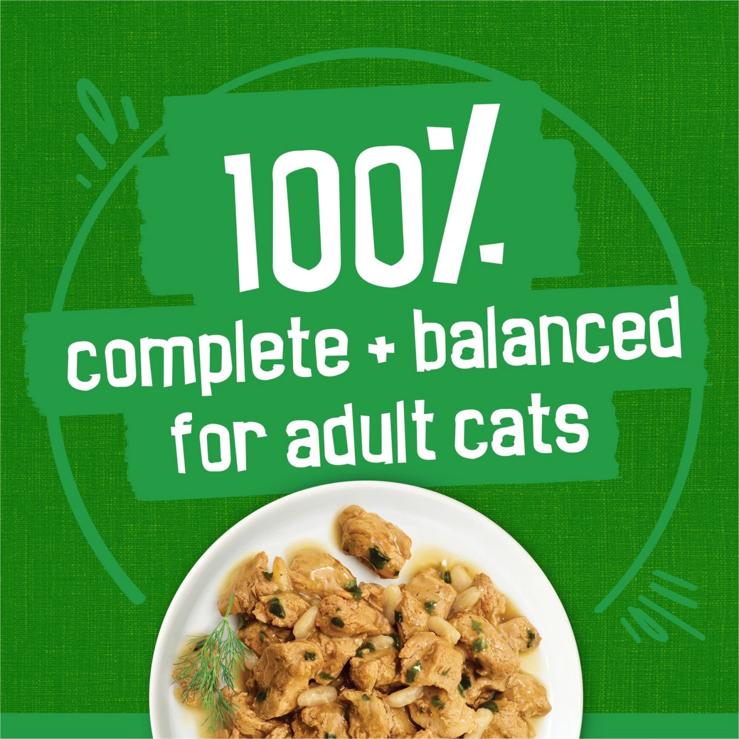 - Provides a 100% complete and balanced meal for cats, on its own or as a delicious kibble topper.