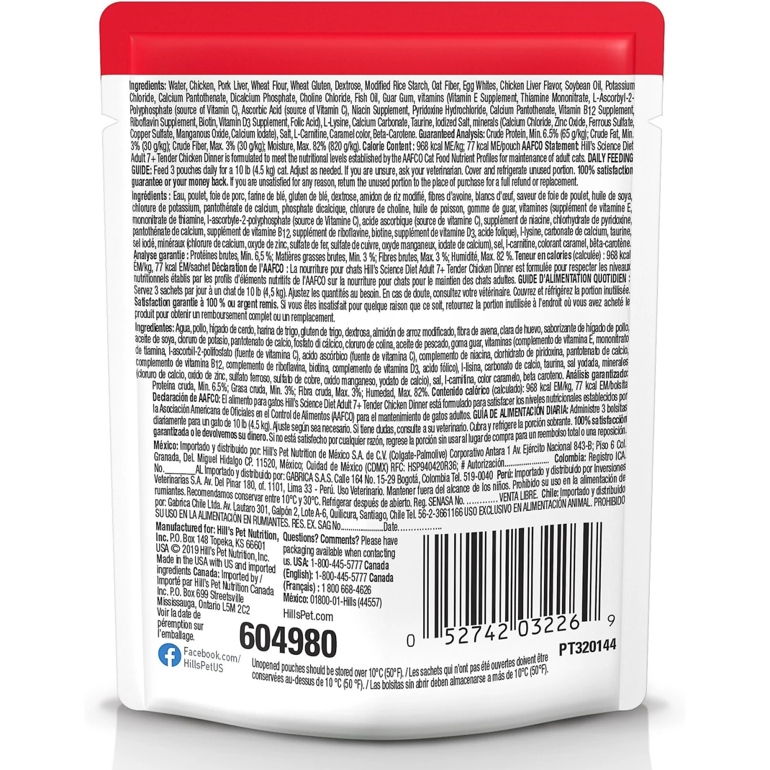 Hill’s Science Diet Adult 7+ Tender Chicken Recipe Cat Food, 2.8-oz Pouch, Case Of 24