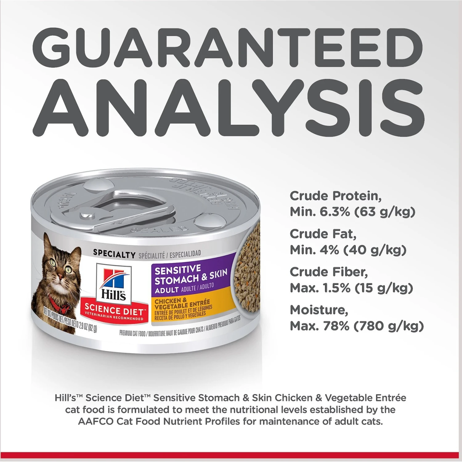 - Special formula for adult cats with sensitive stomachs and/or sensitive skin.