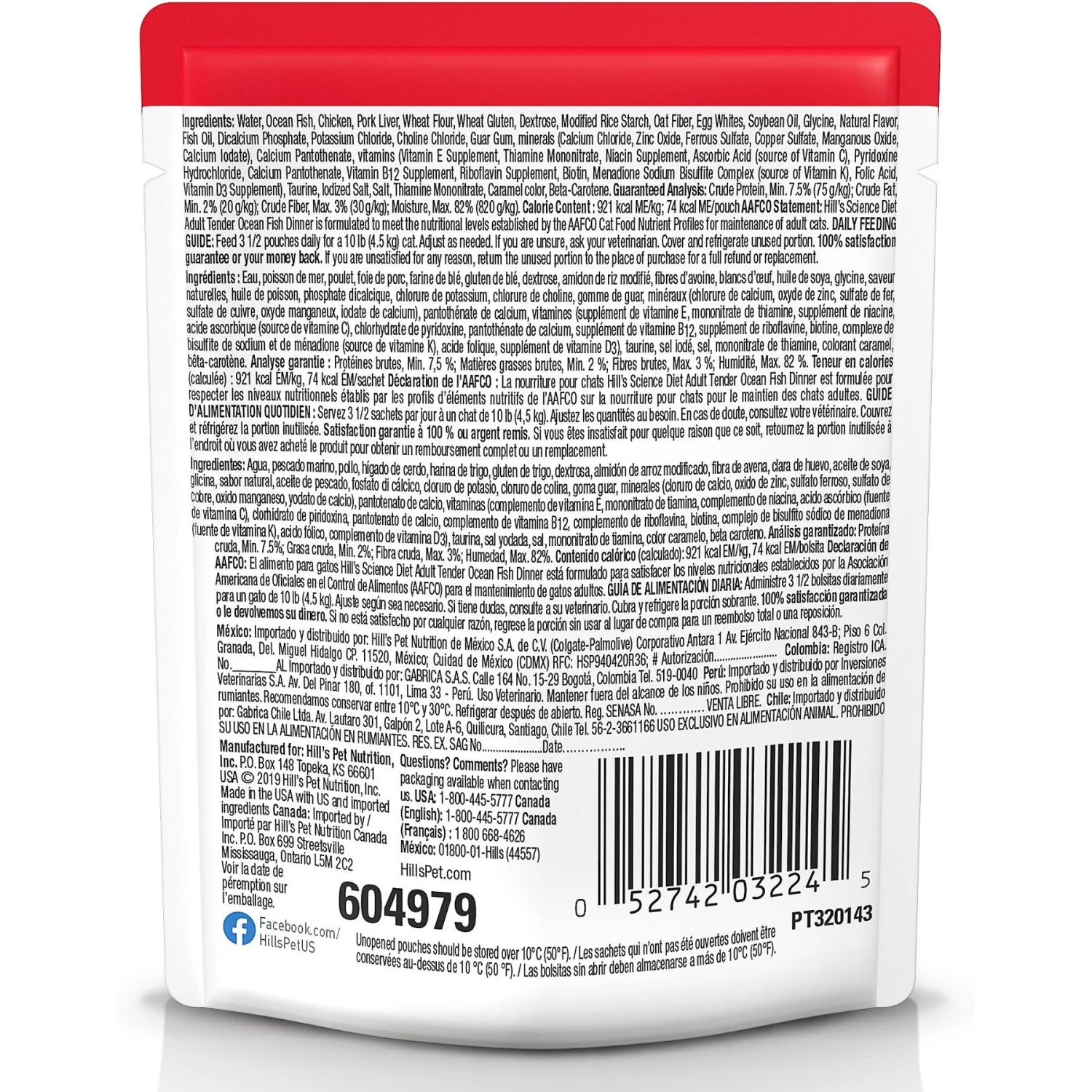 Hill’s Science Diet Adult Tender Ocean Fish Recipe Cat Food, 2.8-oz Pouch, Case Of 24