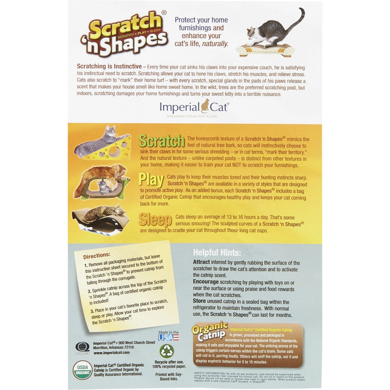 - 100% certified organic catnip is included to help protect your furniture by further enticing your cat to use the scratcher.