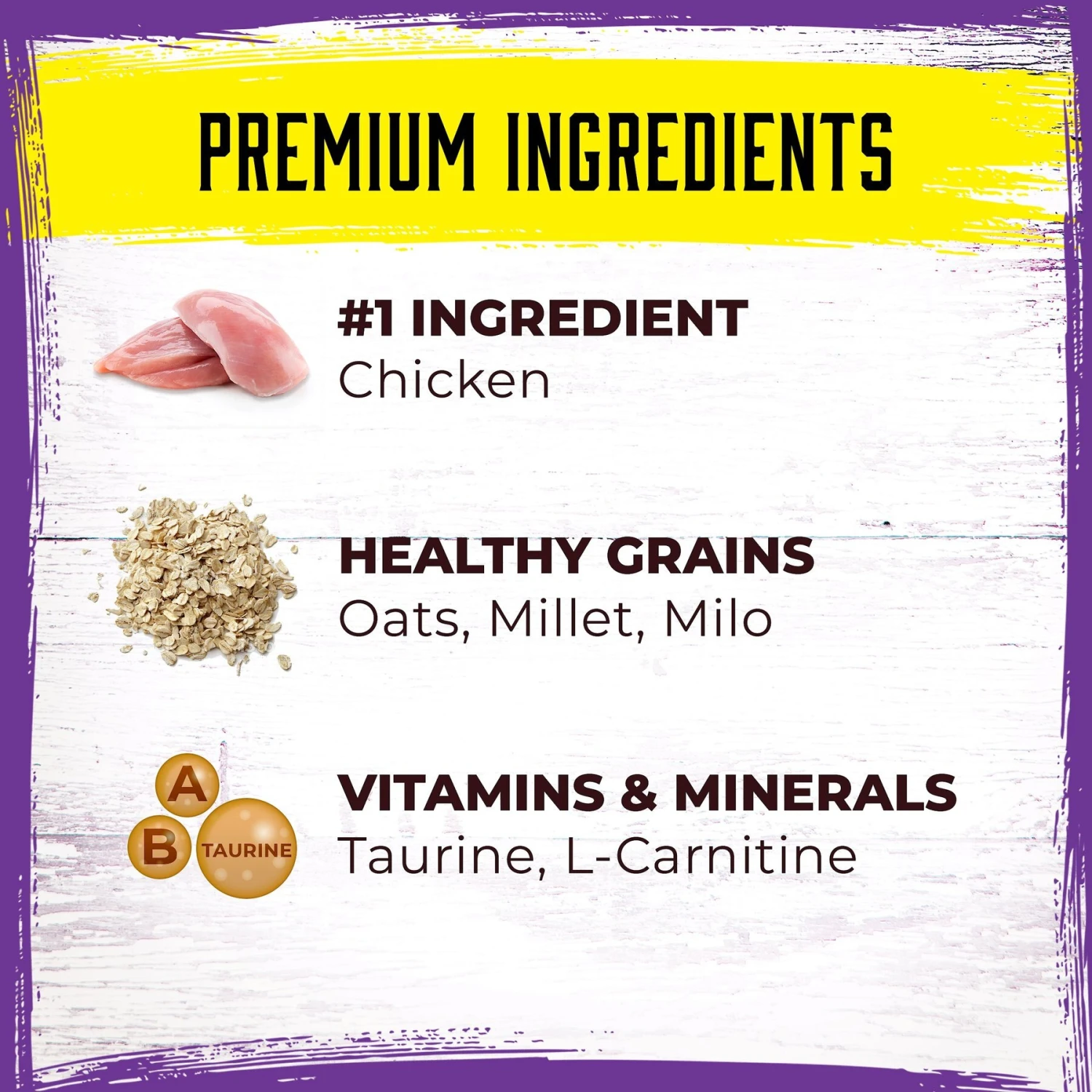 - Supplemented with taurine, an essential amino acid, to support your cat’s heart, digestive and eye health.