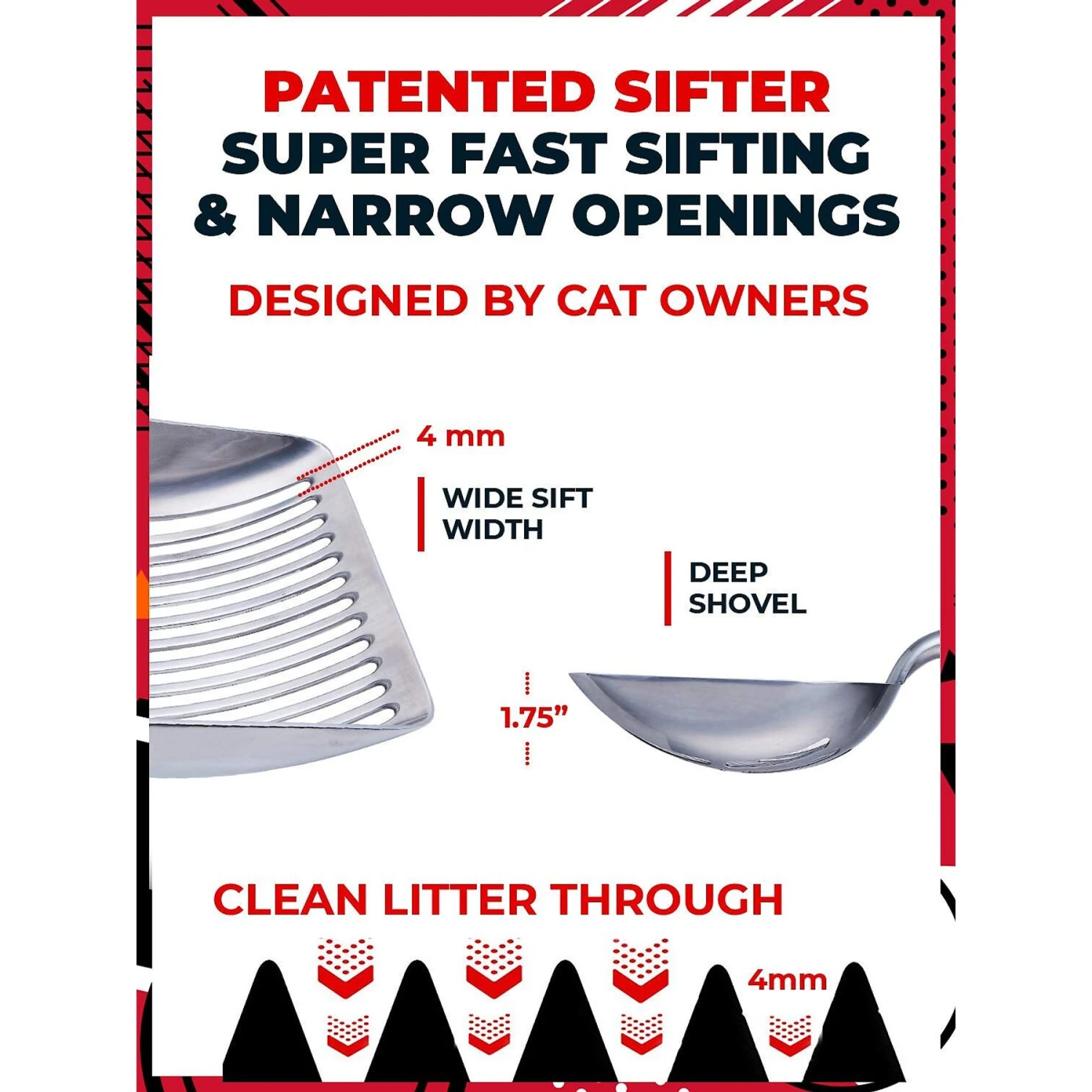 - Keep your feline fur-iend’s litter box fur-esh and clean with this heavy-duty scooper!