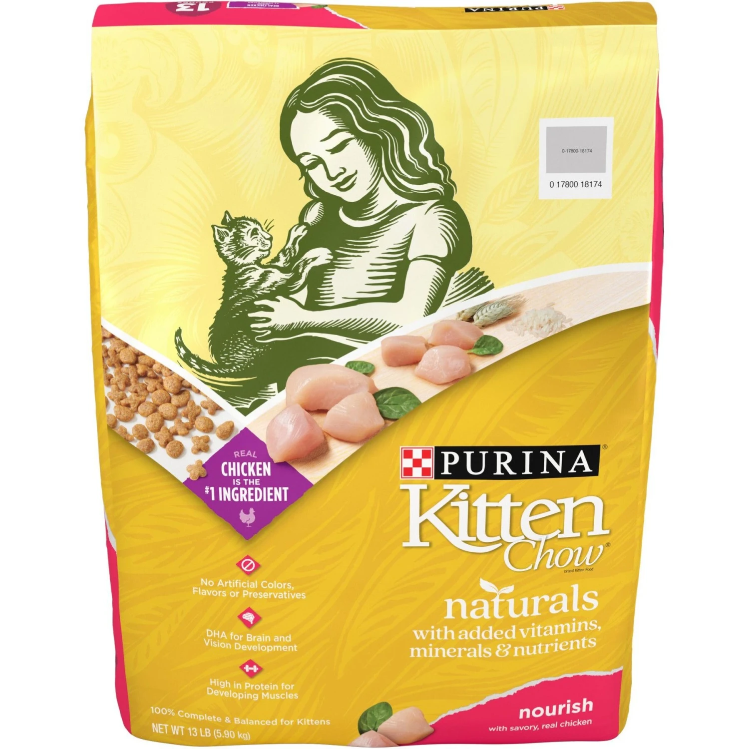 - Purina dry cat food for kittens including high-quality ingredients like real chicken as the number 1 ingredient, and high protein to support your kitten’s developing muscles.