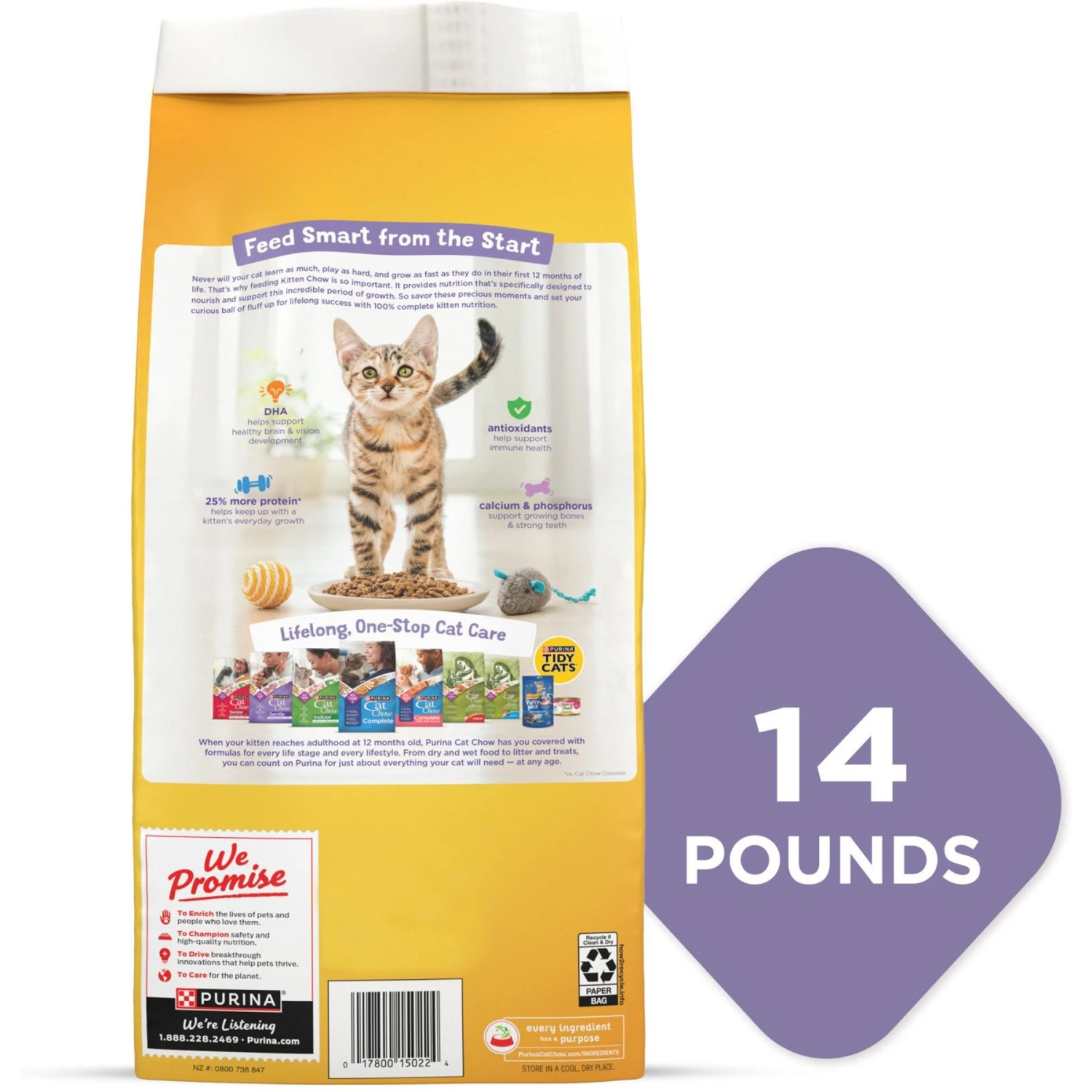 - With 100% complete and balanced nutrition for kittens, Purina Kitten Chow dry cat food nourishes your pal as she take her first steps to a happy life full of adventure.