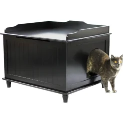 Designer Pet Products Parker Designer Catbox Litter Box Enclosure, Charcoal Black