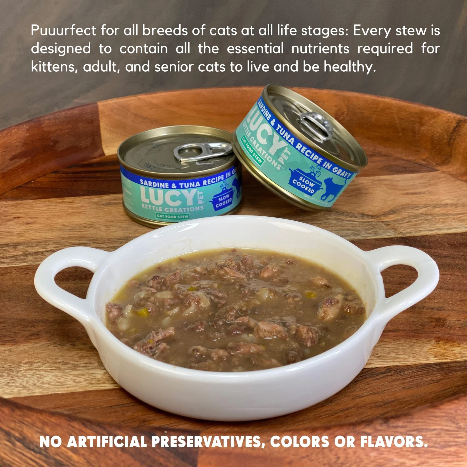 Lucy Pet Products Kettle Creations Sardine & Tuna Recipe In Gravy Wet Cat Food, 2.47-oz Can, Case Of 12