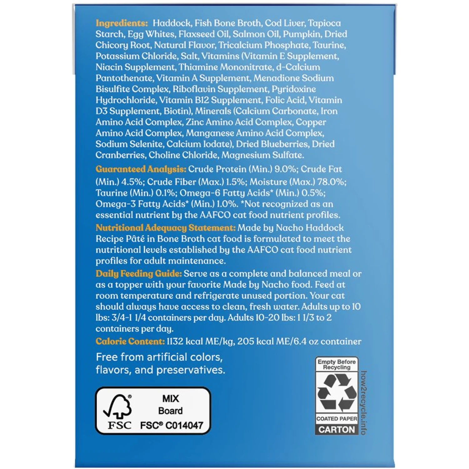 Made By Nacho Digestive Support Pate Haddock Recipe In Bone Broth Grain-Free Wet Cat Food, 6.4-oz Tetra, Case Of 12