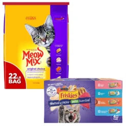 Meow Mix Original Choice Dry Cat Food, 22-lb bag—Meow Mix Original Choice Dry Cat Food is specially formulated to help adult cats stay healthy and happy. To maintain wellness throughout adulthood, fully grown cats need the proper nutrition to keep them in top shape as they age. Meow Mix Original Choice provides all the essential nutrients they need, including high-quality protein and essential fatty acids to help support strong muscles and keep their coat looking its best. It’s packed with tons of wholesome ingredients and the irresistible flavors of chicken, turkey, salmon and ocean fish. This tasty food is complete and balanced for adult cats with all the vitamins and minerals they need for optimal health.