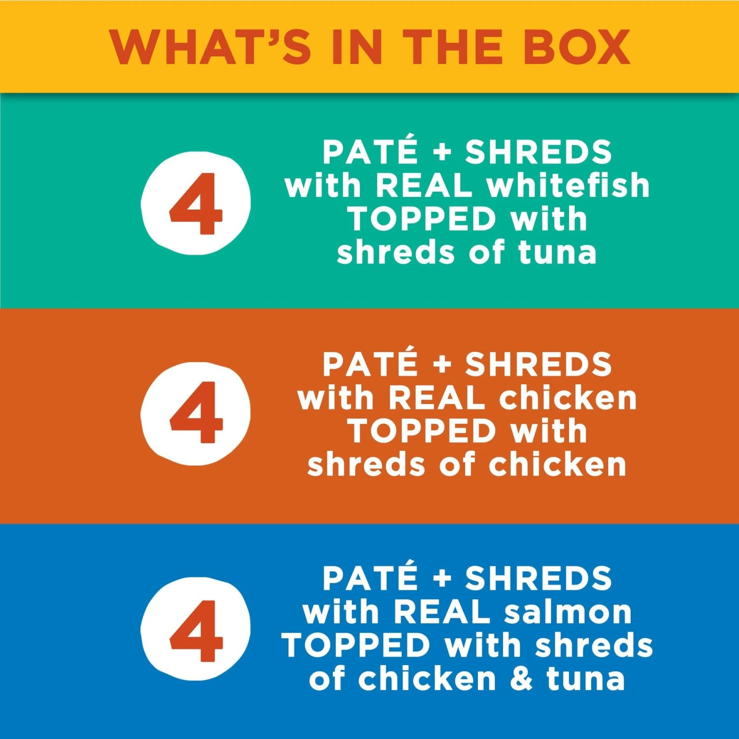 - Real chicken, whitefish, tuna and salmon create a unique combination of flavors