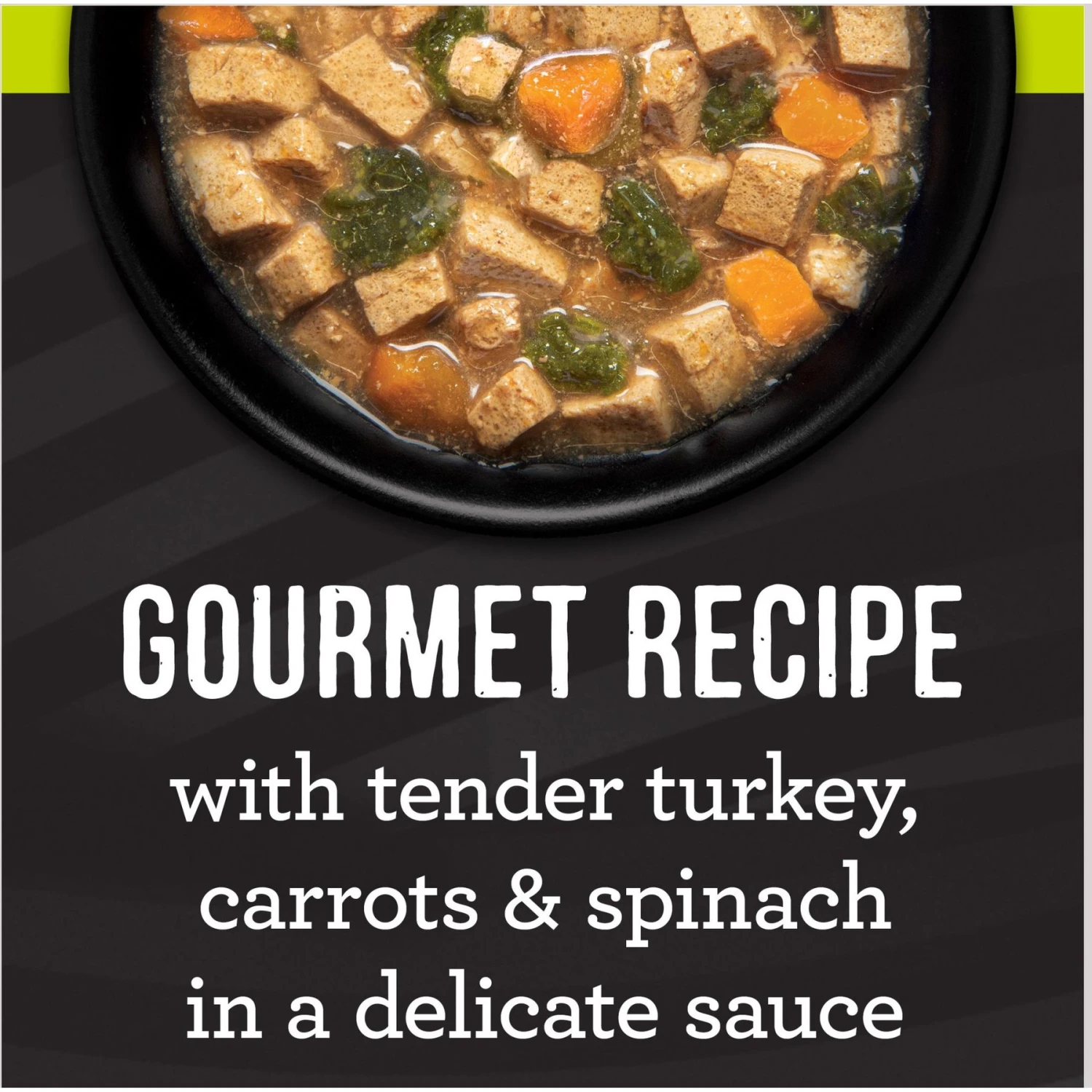 - This cat food features turkey paired with real carrots and spinach in a delicate gravy sauce inspired by gourmet recipes.