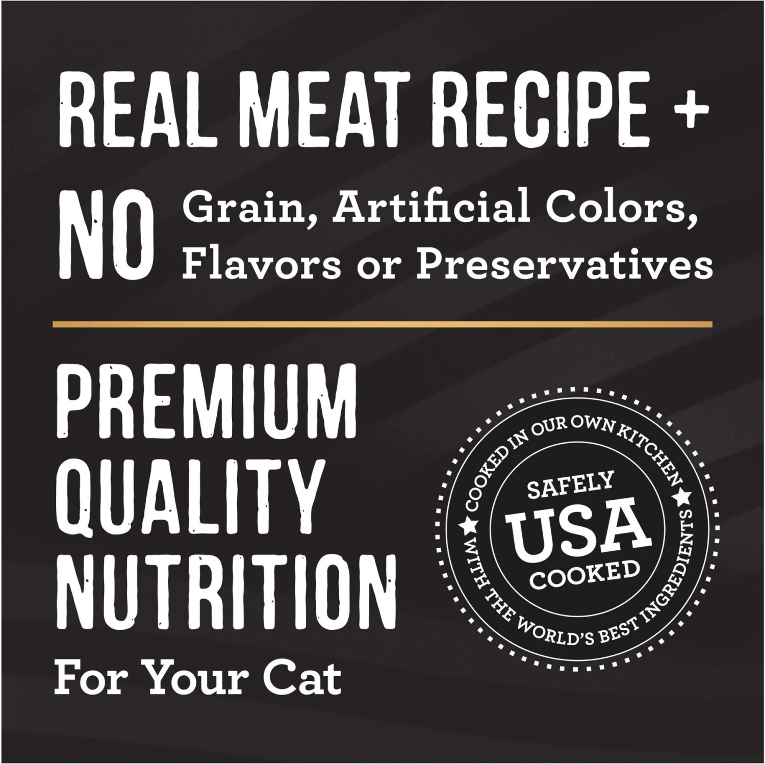 - Each can is grain free and made with real, whole-food ingredients plus added minerals, taurine and vitamins for cats.