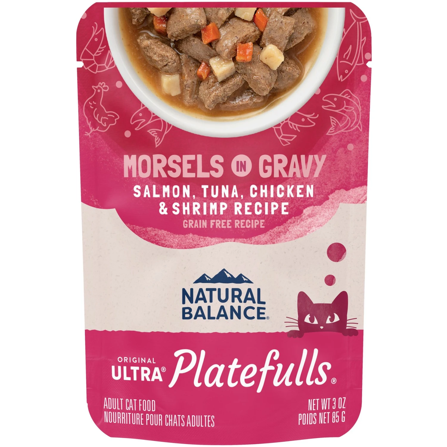 Natural Balance Platefulls Indoor Formula Salmon, Tuna, Chicken & Shrimp In Gravy Grain-Free Cat Food Pouches