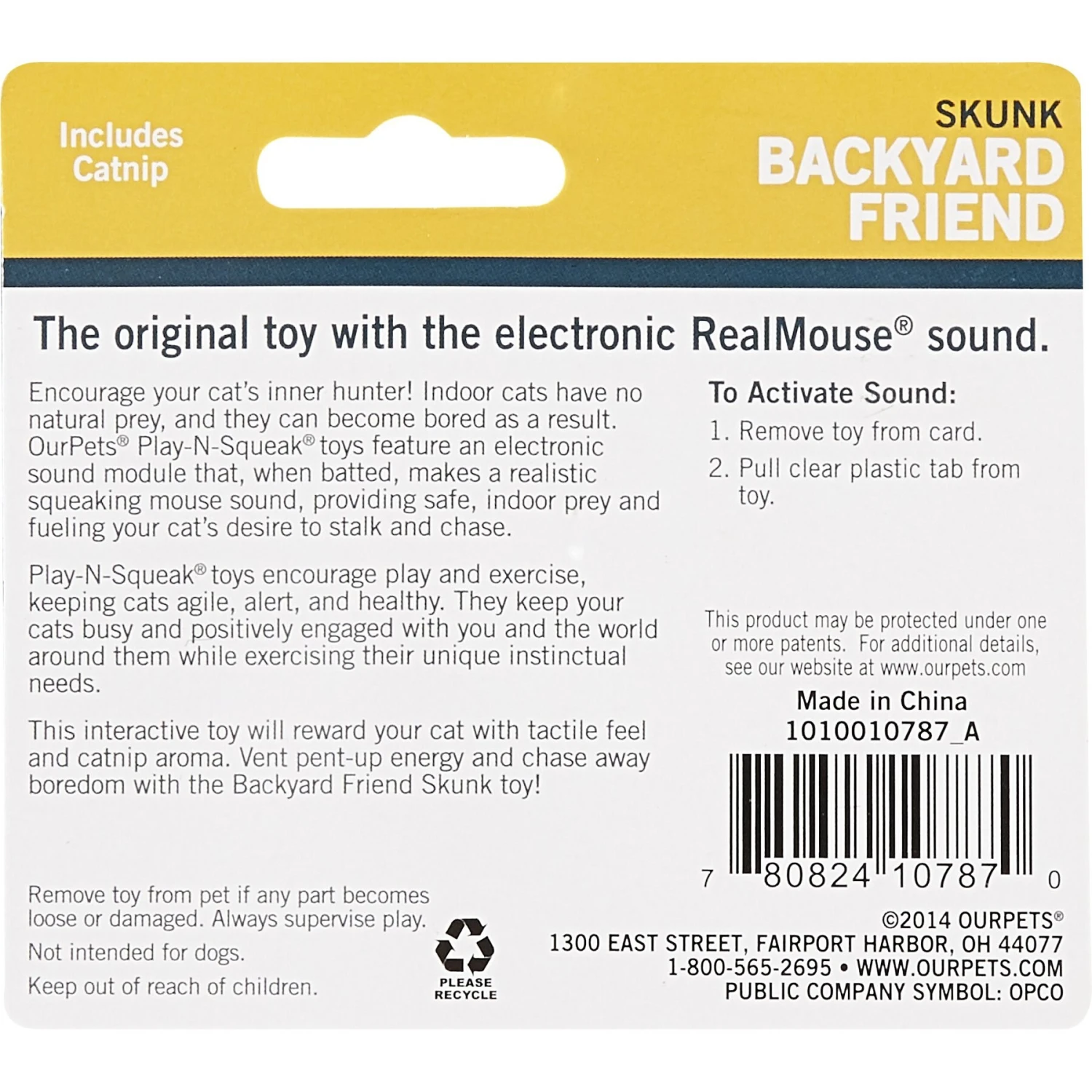 OurPets Backyard Squeaking Skunk Cat Toy