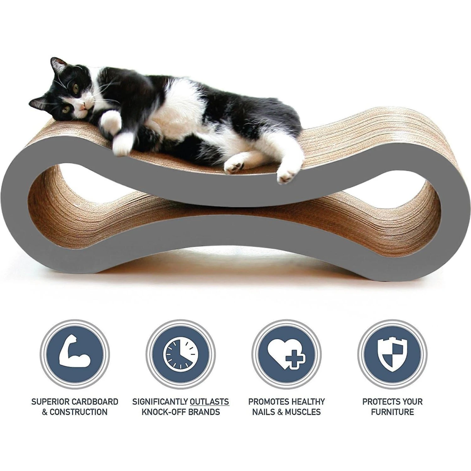 - Multi-purpose cat scratcher and lounger features a sleek, modern design in three neutral colors that are sure to complement any décor.