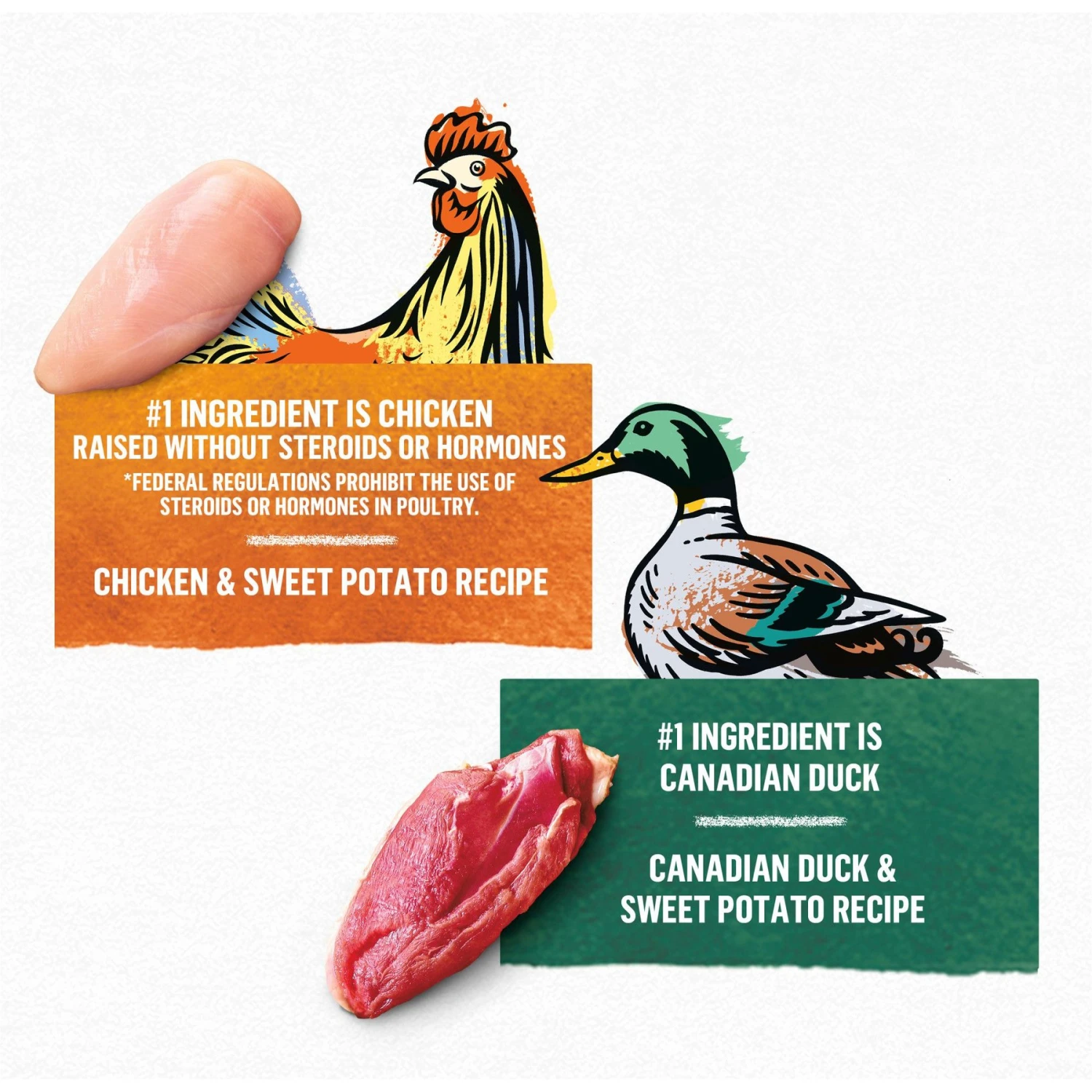 - Features real chicken or duck as the first ingredient.