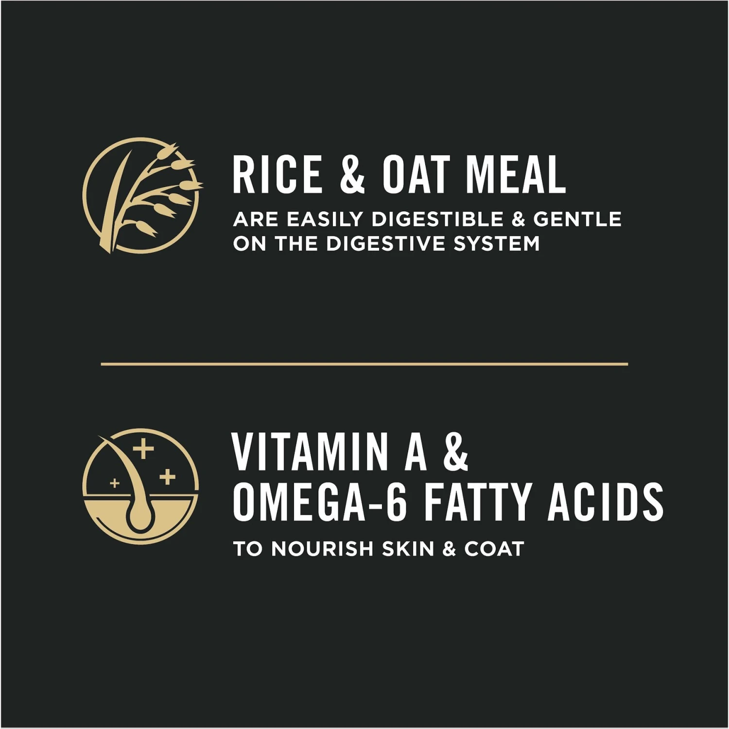 - Rice and oat meal are easily digestible and gentle on the digestive system.