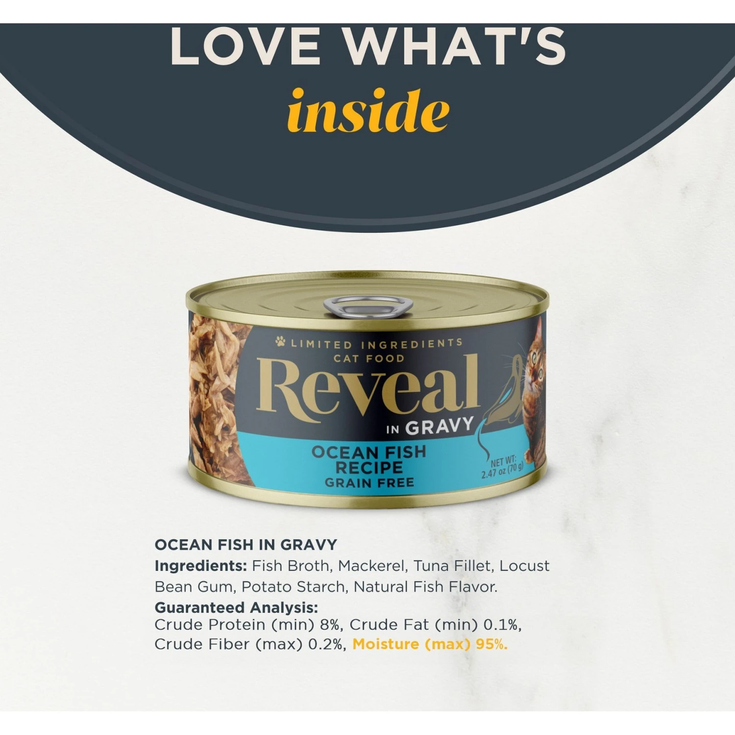 Reveal Natural Grain-Free Ocean Fish In Gravy Flavored Wet Cat Food, 2.47-oz Can, Case Of 24