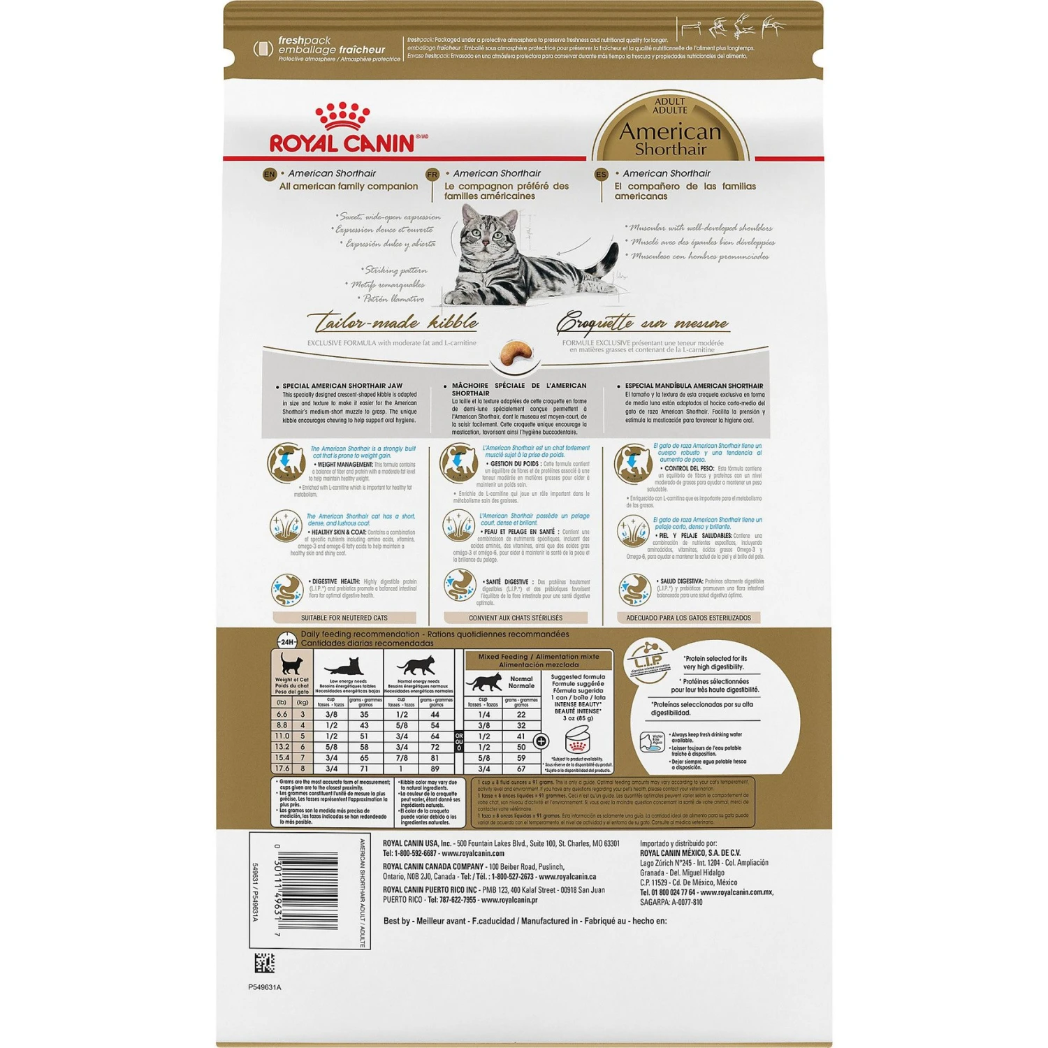- Specialized kibble designed for an American Shorthair’s jaw while also supporting oral care.