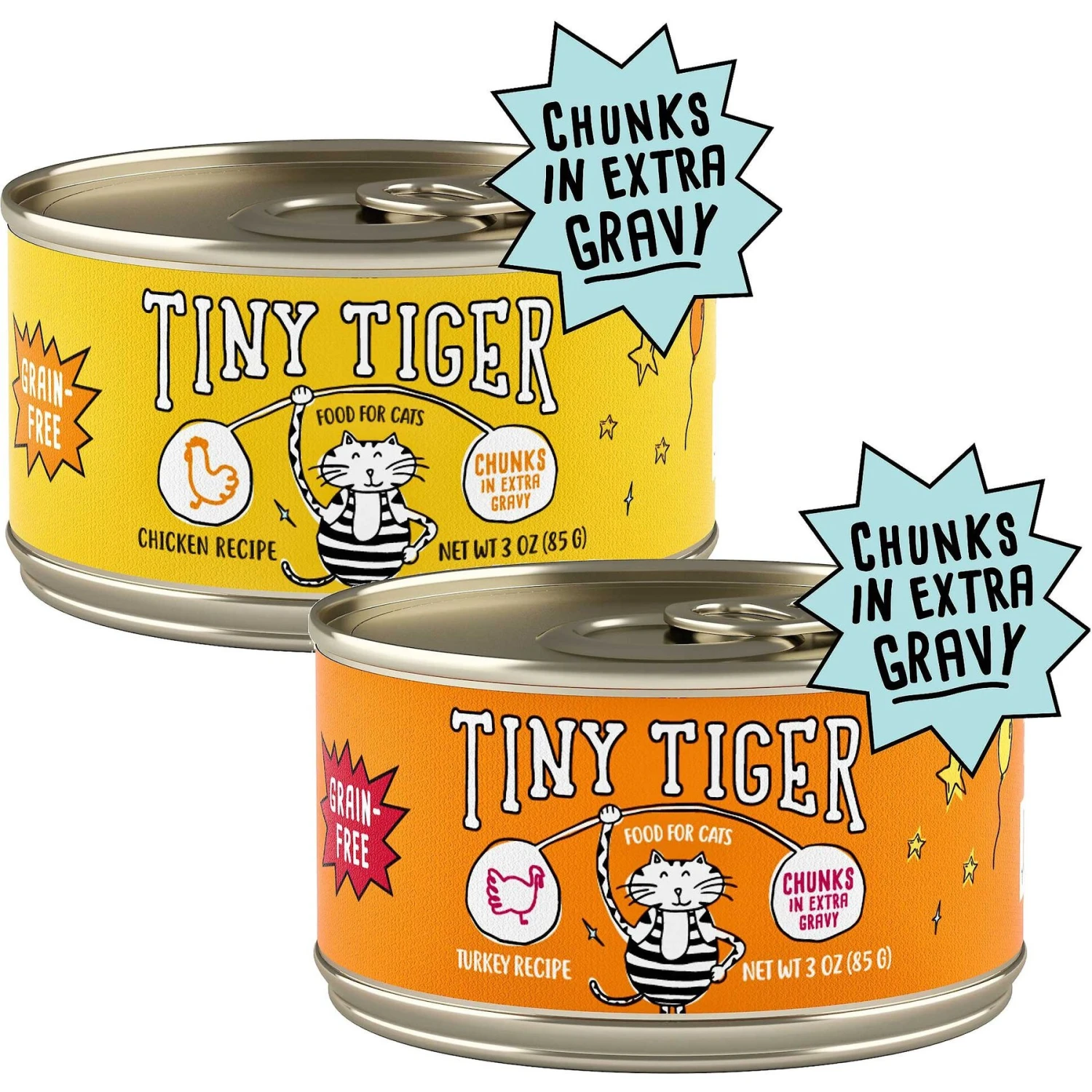 Tiny Tiger Chunks In EXTRA Gravy Chicken Recipe Grain-Free Canned Cat Food & Tiny Tiger Chunks In EXTRA Gravy Turkey Recipe Grain-Free Canned Cat Food