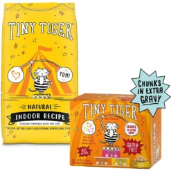Tiny Tiger, Natural Indoor Recipe Chicken Flavor Dry Cat Food & Tiny Tiger Chunks In EXTRA Gravy Beef & Poultry Recipes Variety Pack Grain-Free Canned Cat Food