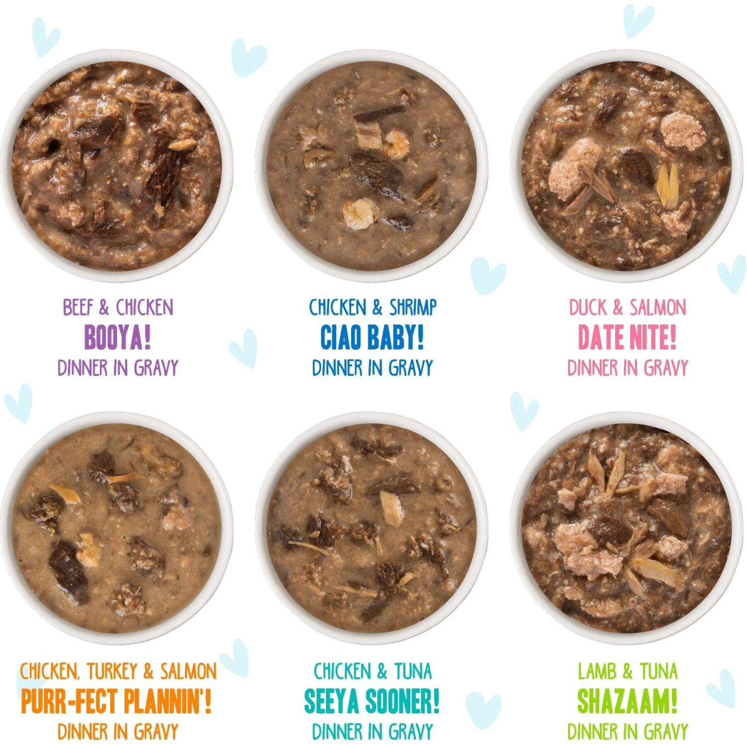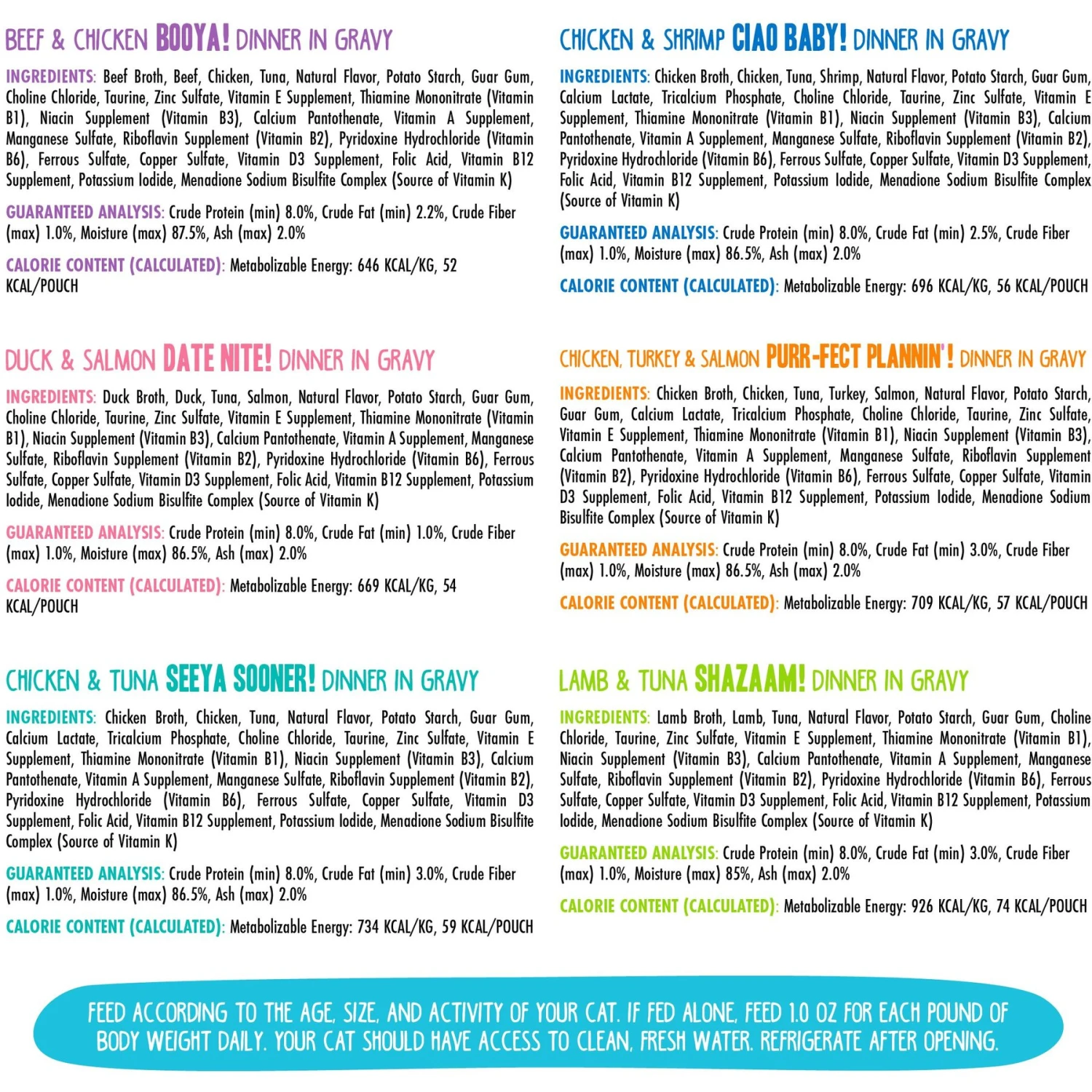 Weruva Cats In The Kitchen Pantry Party Variety Pack Grain-Free Cat Food, 3-oz Pouch, Case Of 12 & BFF OMG Potluck O’ Pouches Variety Pack Grain-Free Cat Food Pouches