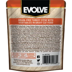 Evolve Turkey Stew With Vegetables In Gravy Grain-Free Wet Pouch Cat Food, 3-oz Pouch, Case Of 24